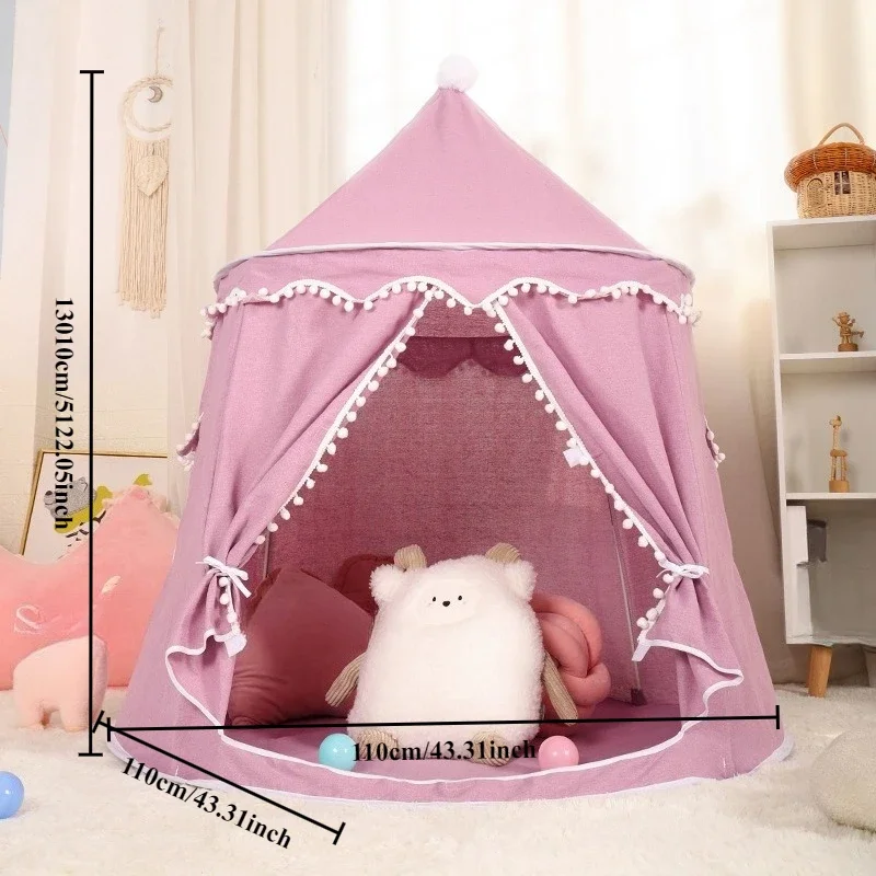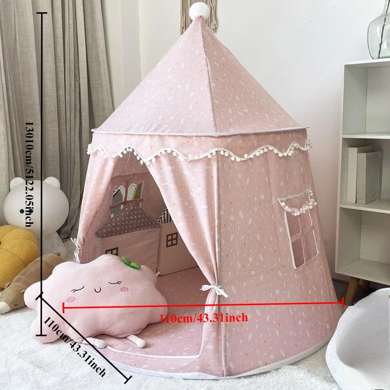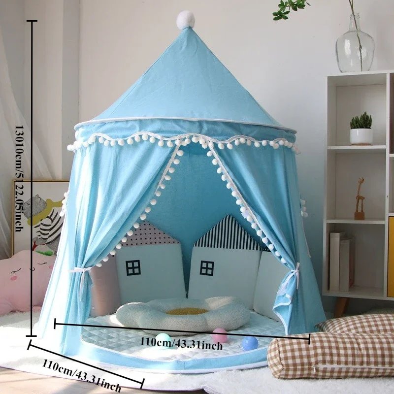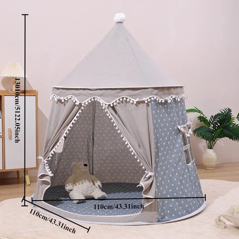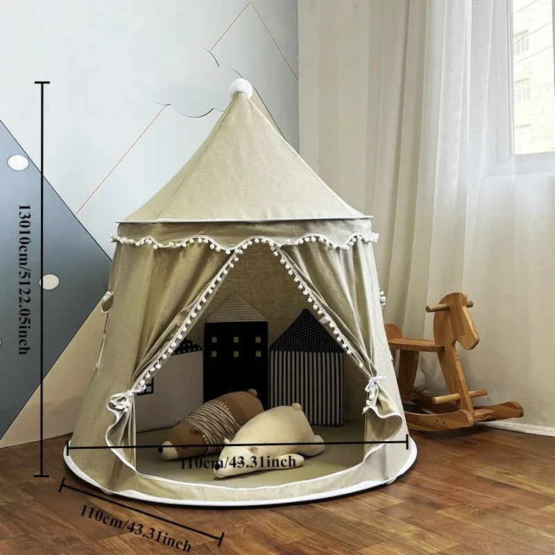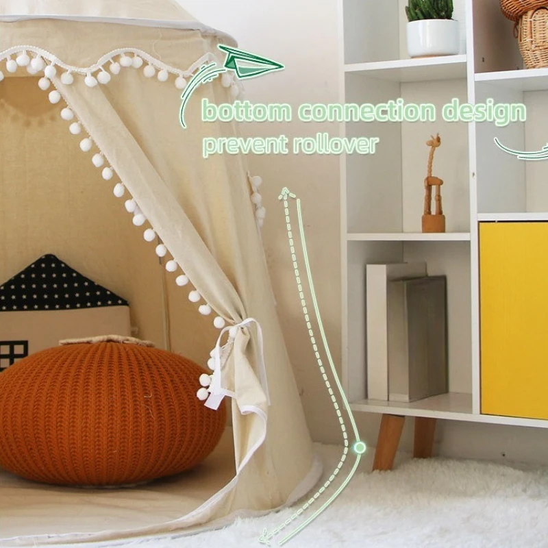 Made from soft, breathable cotton canvas with a charming pom-pom trim, it blends effortlessly into any home while inspiring endless adventures. From story time to quiet time, this play tent invites joy, comfort, and curiosity in every moment.